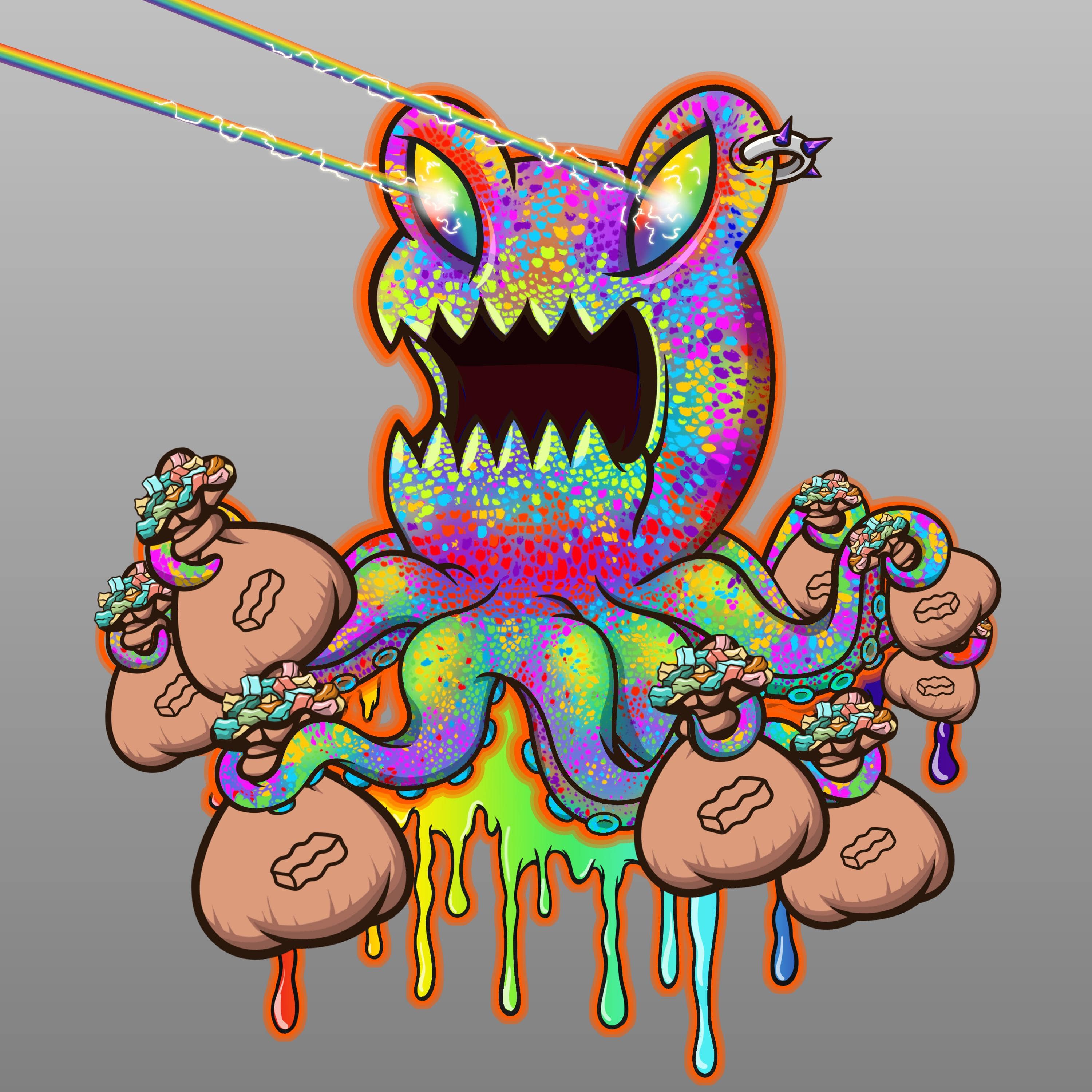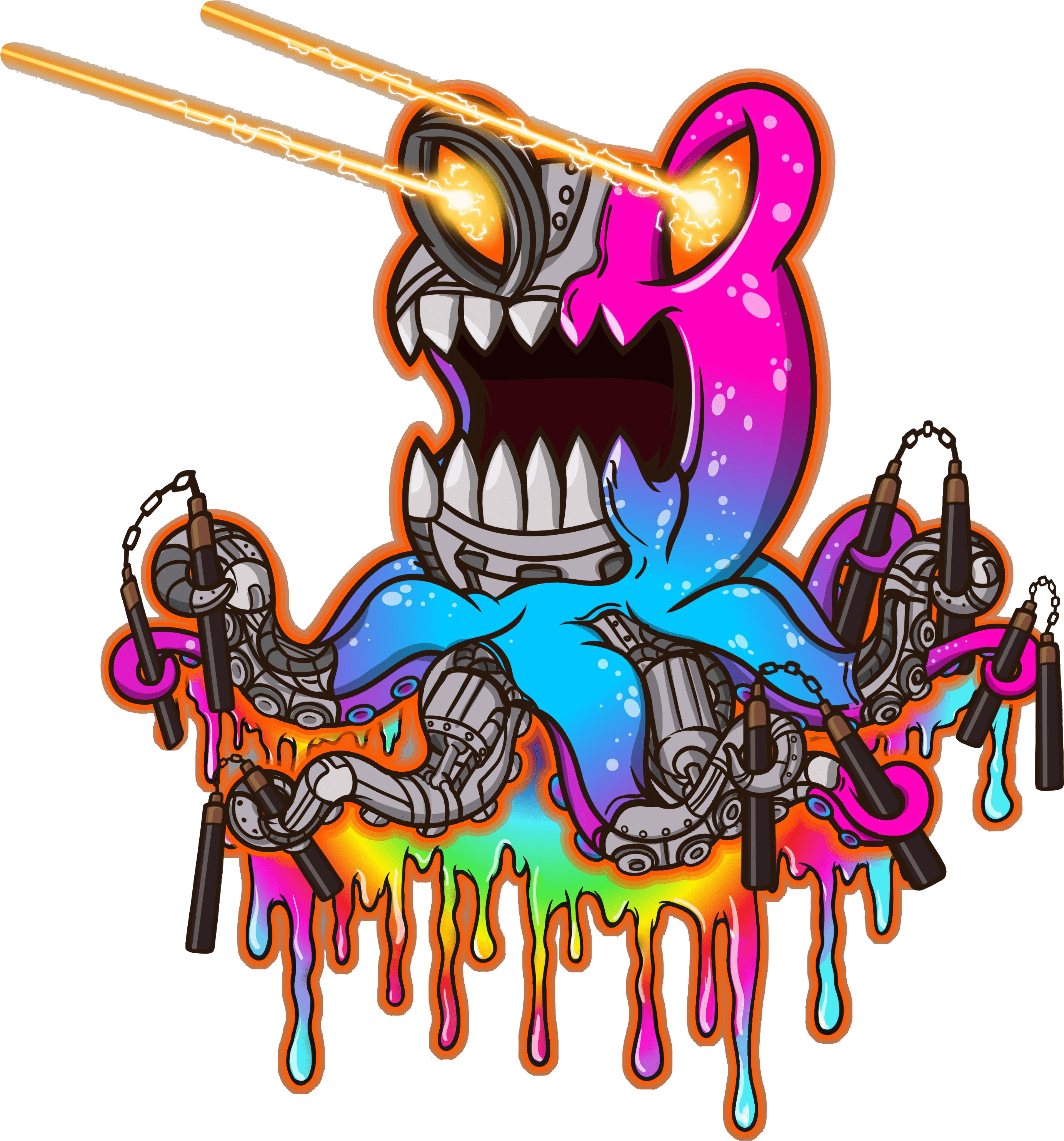 The Laser Octopus Club NFTs possess unique traits that stand out from other projects in the form of transmutation skin patterns to include: ninjas, zombies, reptiles, mammals, psychedelic, cyborgs, thermal vision, galaxy, fiction, legacy design & more. Other traits include varied lasers, colorful drips, fun weapons, heist loots, yummy food, earrings, candy, random cool items and gadgets.